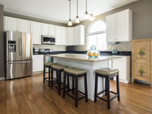 The next "safe bet" for your kitchen remodel is going to be the flooring. Much like the color choice above, hardwood flooring is going to be your best bet in the kitchen and even throughout much of the home. Hardwood floors have timeless appeal and "go" with virtually any color or material you can pick for accent items, furniture or appliances. It is tough and capable of withstanding lots of traffic and can be refinished multiple times to further increase its utility. Lastly, the open-floor plan nature of hardwood allows the rooms to flow into each other and creates a larger feeling throughout the home.