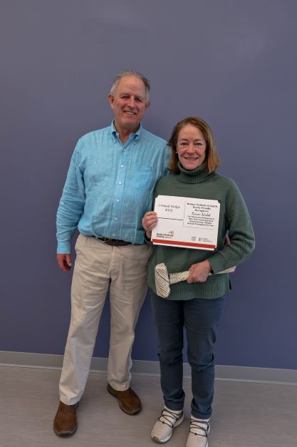New for this year - the Badger Peabody & Smith Realty Good Neighbor award. The winner of this award is nominated for it by other agents and staff. The Good Neighbor Award recognizes the agent that makes an extraordinary impact on their community through volunteer work. The award was presented to Nikki Barrett from the Littleton office. Nikki works to help deliver meals on wheels through the Littleton Area Senior Center, she offers pet therapy with her dog Suzie at the Morrison Communities in Whitefield, she helps raise money for North Country Boys & Girls Club and she volunteers for the Lakes Region Board of Realtors as well as AHEAD (Affordable Housing Education and Development).
