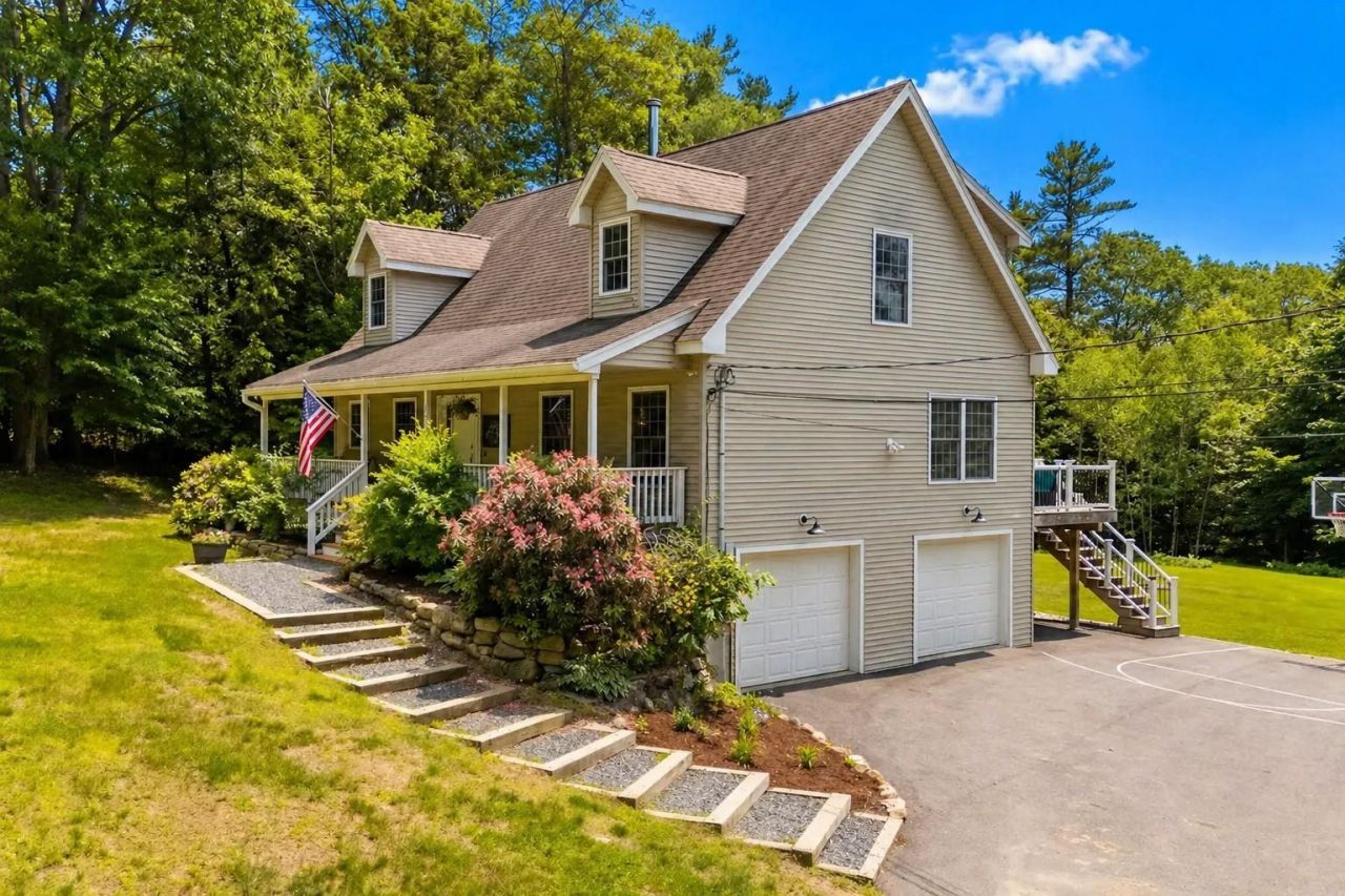 Plymouth, NH-Set along country road, this inviting four-bedroom, three-bath Cape offers the perfect blend of warmth, space, and everyday functionality on 1.12 acres with seasonal views of Tenney Mountain. From the moment you arrive, the welcoming Farmer's porch sets the tone as an ideal spot for morning coffee or relaxing evenings. Out back, an oversized composite deck overlooks a spacious yard, offering an ideal setting for gatherings, outdoor play, and entertaining. Inside, the home is thoughtfully designed for today's lifestyle. The open-concept kitchen and living area acts as the home's central gathering space, where a cozy wood-burning stove adds both charm and comfort during the New England winters. The kitchen features black granite countertops, warm wood cabinetry, and a center island that makes both casual meals and hosting effortless. The first-floor layout provides a highly adaptable space to fit your needs. A spacious room currently used as a family room can easily function as a private primary suite, complete with its own bath and walk-in closet-ideal for single-level living if desired. A convenient half bath with first-floor laundry completes this level. Upstairs, you'll find three roomy bedrooms, including an expansive front-to-back room where there is space for a desk or reading nook, along with a full bath for the second level. Additional space in the partial basement, currently set up as a home gym, offers the flexibility to be finished as additional living space. A two-car under garage, paved driveway, and storage shed further enhance the home's functionality. Located just two miles from downtown Plymouth and Interstate 93, this property combines the calm of country living with easy access to dining, recreation, schools and everyday conveniences. A wonderful place to put down roots and feel right at home. Showings start at the open house May 2nd from 9:30-12:00.