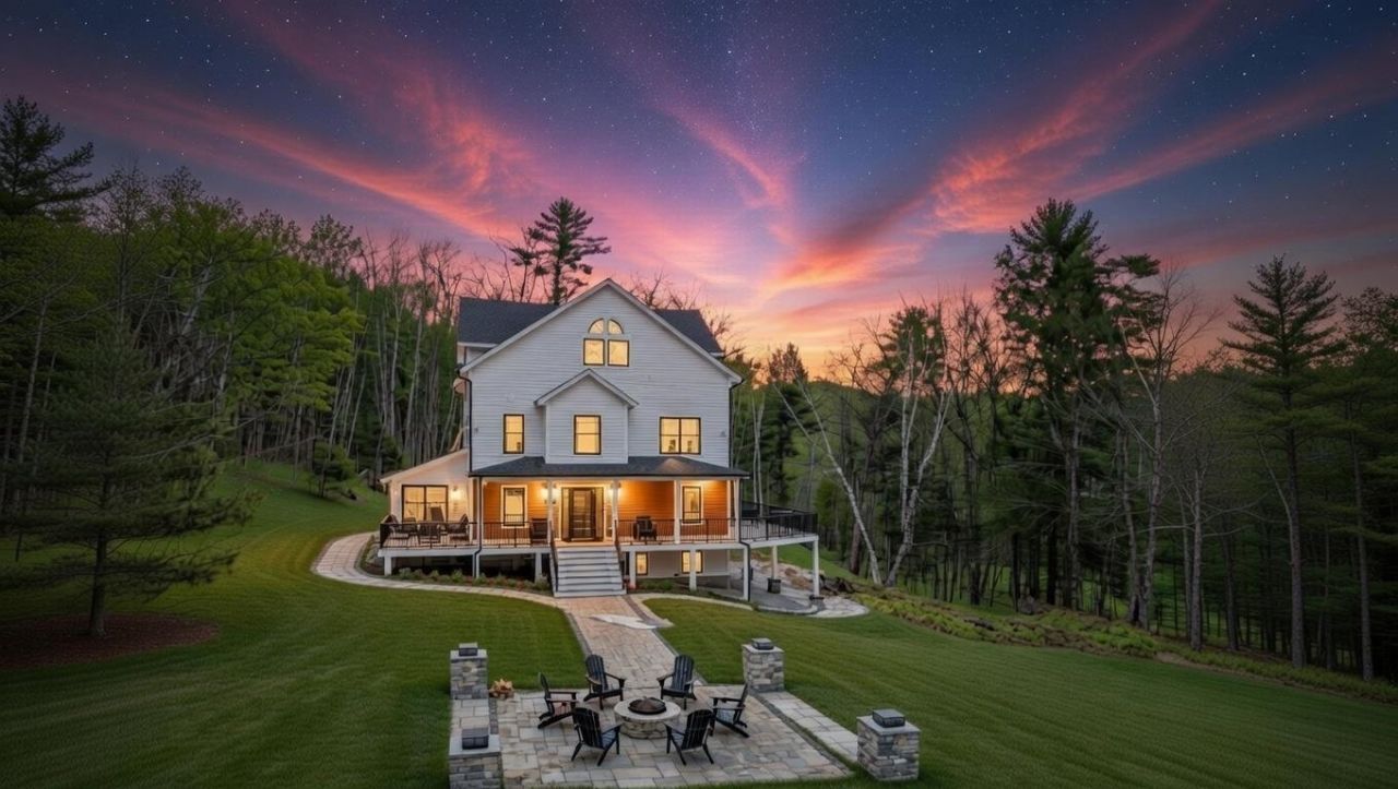 Renowned artistry meets elite 2026 architectural design in this 4,400+ SF curated sanctuary, perfectly positioned on a private 13-acre estate defined by custom finishes and visionary design. Constructed to the highest standards, the residence unfolds as a lived-in gallery, defined by bespoke 3D murals and meticulous finishes exclusively furnished and designed by the acclaimed artist-builder duo. Every element is purposefully selected, opening into a kitchen defined by imported European cabinetry. A polished quartz waterfall island and matching backsplash center the room, tied together by top-of-the-line bespoke Caf series appliances with rose gold trim. The adjacent living room serves as a beautifully composed exhibition of the home's artistic detail, flooded with natural light from large, wide-profile windows. Recessed lighting and sculptural fixtures accent the craftsmanship throughout, centered by a modern fireplace. Sliding doors open to a farmer's porch, framing forest views from every angle. Sharing these forest views is a cedar sauna with one-way privacy windows for complete seclusion. The space is finished with a lounge for relaxing and a 2nd kitchen featuring golden granite & walnut wood grain cabinets. The 2nd floor offers 4 spacious br's, including a primary suite with a detailed private bath. Crowning the residence on the 3rd floor is a penthouse suite that functions as a home within a home. This expansive, open-concept space features its own kitchen with a mini-fridge and a striking golden granite fireplace. The ensuite bathroom spares no detail, featuring porcelain tile floors & backsplash, stone floor accents, and a soaking tub. Artistic light fixtures and vaulted ceilings complete this secluded 3rd floor. Stepping outside, stone-paver walkways connect multiple patio spaces, including a sunken fire pit lounge with illuminated stone pillars. The home includes a 2-car garage & tiered decking to take in the wooded privacy of the 13-acre lot