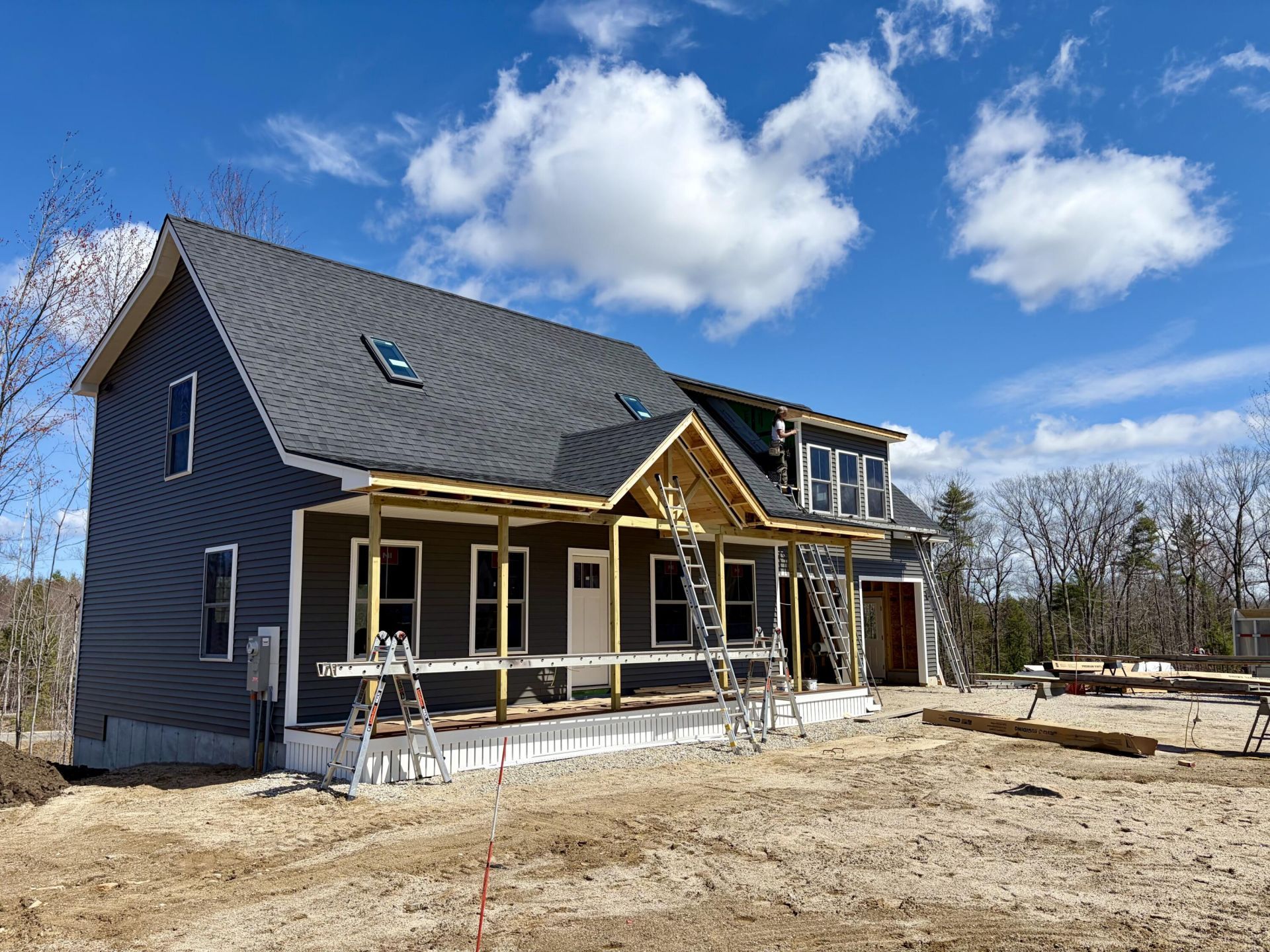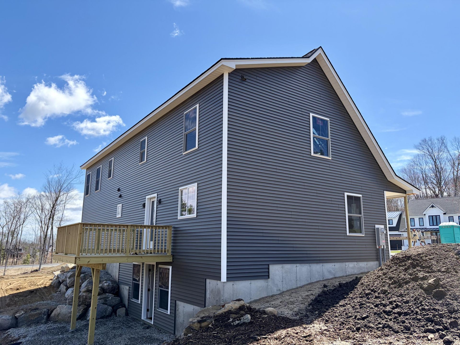 This thoughtfully designed 3-bedroom, 2.5-bath Cape-style home offers over 1,900 square feet of living space with a bright, sunlit open-concept first floor ideal for modern living and entertaining.The spacious living area is highlighted by a cathedral ceiling and an open railing to the second level, creating an inviting sense of space and architectural interest. The open kitchen and dining area flow seamlessly to the living room, while a full-length farmer's porch provides classic New England charm and the perfect place to relax. The second floor features a private primary suite with walk-in closet and ensuite bath, along with two additional bedrooms, a full common bathroom, and the convenience of a second-floor laundry room. A walkout daylight basement offers excellent storage and future expansion potential.Step outside to enjoy the private rear deck, ideal for entertaining or quiet evenings outdoors. Sidewalks connect the neighborhood to over 41 acres of protected open space, complete with walking trails and abundant wildlife. The home is serviced by worry-free public water. Ideally located in Standish, this home is less than one mile to the Sebago Lake Station boat ramp and under three miles to Hannaford, offering both recreation and everyday convenience. Built by a local, reputable builder with over 20 years of experience, this home combines quality craftsmanship, thoughtful design, and an unbeatable location.
