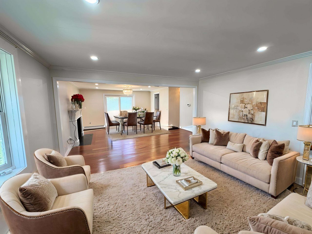 Welcome to this beautifully updated Cape-style home featuring a two car garage and a level, landscaped yard-perfect for relaxing or entertaining. Thoughtfully designed, this home offers abundant space for family gatherings and special occasions. The stunning kitchen is a chef's dream, complete with stone countertops, a large center island the comfortably seats four, and new stainless steel appliances. Just off the kitchen, the expansive dining room provides ample space for hosting large family dinners. Sunlight pours into the inviting living room, which flows seamlessly into a den with a charming fireplace. A stylish renovated 3/4 bath completes the first floor. Upstairs, you'll find two comfortable guest bedrooms, and a private suite featuring a walk-in closet, private sauna and direst access to a remodeled 3/4 bath. The finished walkout basement offers even more living space with two additional rooms, a generous family room and a third 3/4 bath. With plenty of updates this house is ready for you to make it your home!