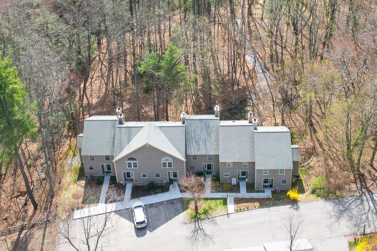 Welcome to this cozy, turn-key townhome offering three levels of finished living space. Nestled within a small highly desirable community, this home combines everyday convenience with a sense of retreat, set on a private cul-de-sac surrounded by a peaceful wooded backdrop for added privacy. This inviting floor plan showcases an open-concept main living area, complete with a refreshed kitchen, dedicated dining space, and a sun-filled living room. The living room features a cozy wood-burning fireplace, charming built-ins, and double sliders that lead to a private deck overlooking the Baboosic Brook. The second level features two generously sized bedrooms, both with high ceilings and ample closet space. The primary bedroom includes a new slider leading to its own private deck. The newly renovated bathroom is beautifully appointed with an oversized shower and custom cabinetry. The finished walkout lower level offers versatile space ideal for a family room, home office, gym, or whatever best suits your needs, along with a dedicated area housing the washer, dryer, and utility sink for added convenience. Pet-friendly and ideally located with convenient highway access, this townhome also features a carport to protect your vehicle from the elements?making it the perfect place to begin your next chapter.